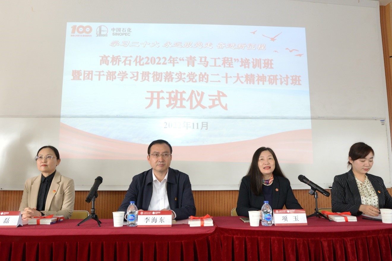 11月21日,高桥石化2022年“青马工程”培训班在冰球突破mg正规官网长宁校区开班。高桥石化党委副书记、纪委书记、工会主席李海东,冰球突破mg正规官网副院长项玉,高桥石化培训中心主任商磊,高桥石化团委书记张晓燕出席本次开学典礼。来自中国石化上海高桥石油化工有限公司共49人参加此次培训。
