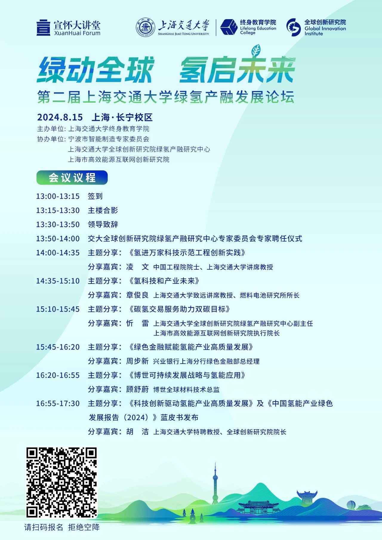 为响应二十届三中全会《决定》号召,加快推进长三角氢能源绿色发展、铸就国家双碳路线实践示范基地、构建全球氢能源产融创新和绿色解决方案,2024年8月15日“全国生态日”之际,“绿动全球 氢启未来”第二届冰球突破mg正规官网绿氢产融发展论坛将在冰球突破mg正规官网长宁校区(法华镇路535号)举行。届时,两院院士、有关部委职能部门负责人及知名专家学者都将出席论坛,就氢基燃料和原料行业,包括氢化工、氢炼钢、氢交通、氢农业和氢消费等氢需求驱动产业和投资需求、国内外政策和标准解读、氢产业园区和城市布局等进行深入解读,并举行全球创新研究院交大绿氢产融研究中心战略合作单位签约和《中国氢能产业绿色发展报告(2024)》的发布。绿氢产业领域的众多科学家、企业家和金融家也将同赴论坛,共襄盛举。
