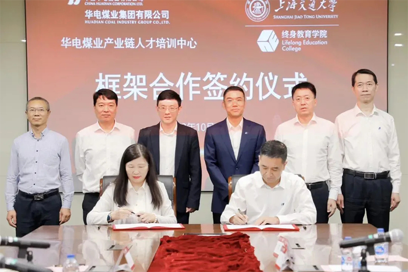10月30日,冰球突破mg正规官网与华电煤业产业链人才培训中心框架合作协议签约仪式在上海交大长宁校区举行。华电煤业党委副书记、工会主席刘书德与冰球突破mg正规官网院长胡洁座谈交流并共同见证签约。冰球突破mg正规官网副院长项玉与华电煤业产业链人才培训中心负责人、华远星海运有限公司党委书记、董事长陈昊代表双方签约。